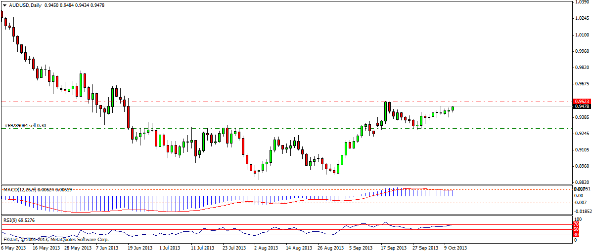 На сегодня по паре AUD\USD торговля ведется выше скользящих средних линий. дополнительный индикатор выше нулевой линии с показанием на повышение а основной индикатор дает сигнал на покупку намерен покупать при пробитии линии 0.9472 до линии сопротивления 0.9530 стоп лосс установить у линии поддержки 0.9459.