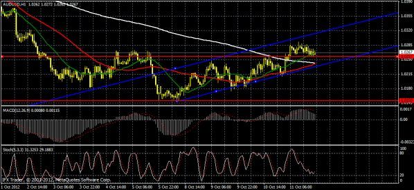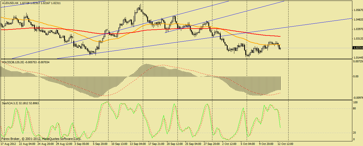 Пара сегодня опять немного выросла пробившись выше уровня 1.0250, и сейчас идет как-бы закрепления но рынок не очень силен так что пробой получился на 30-40 п, пока картинка выглядит на верх, но в связи с небольшими движениями, может и нехватит денег чтоб погнать цену на верх, так что нужно быть предельно осторожным... Думаю никаких проблем с ростом пары не будет. Цели 1,047 и 1,063 вполне реальны. тем более если ещё одна белая дневная свеча появится то и макд также даст сигнал на покупку. ![]() | ||||