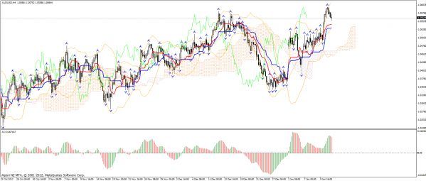 Индекс доллара снижается а в паре aud/usd американец растет против австралийца, к тому же если внимательно посмотреть на дневной график то здесь видно четкое касание и отбой от верхней границы бокового канала а на 4 часовом графике MASD показал тоже южный сигнал с образовавшейся медвежьей дивергенцией поэтому лично я сижу в продажах. ![]() Редактировалось: 1 раз (Последний: 11 января 2013 в 18:45) |