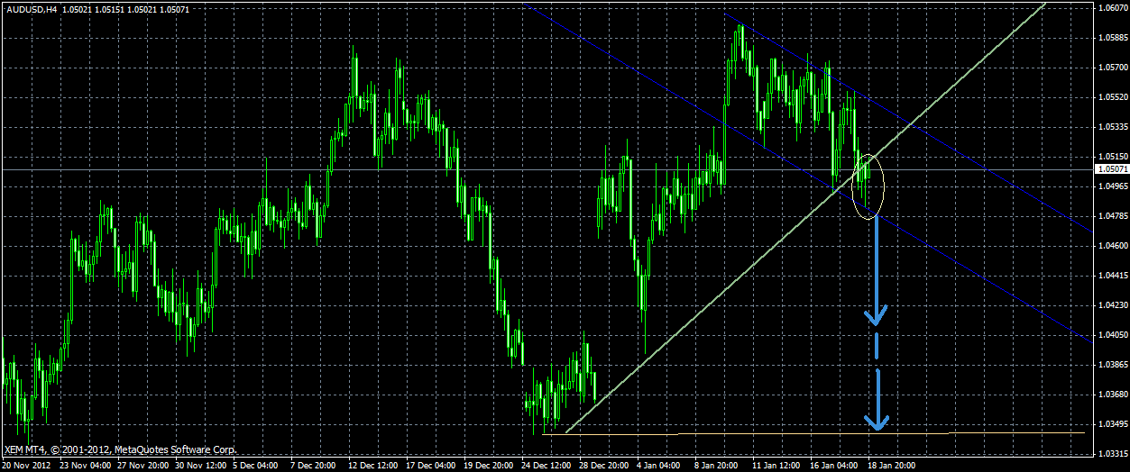 Aud/usd: пока уровень 1.0550 и граница наклонного канала выступают сопротивлением,возможно дальнейшее снижение пары.