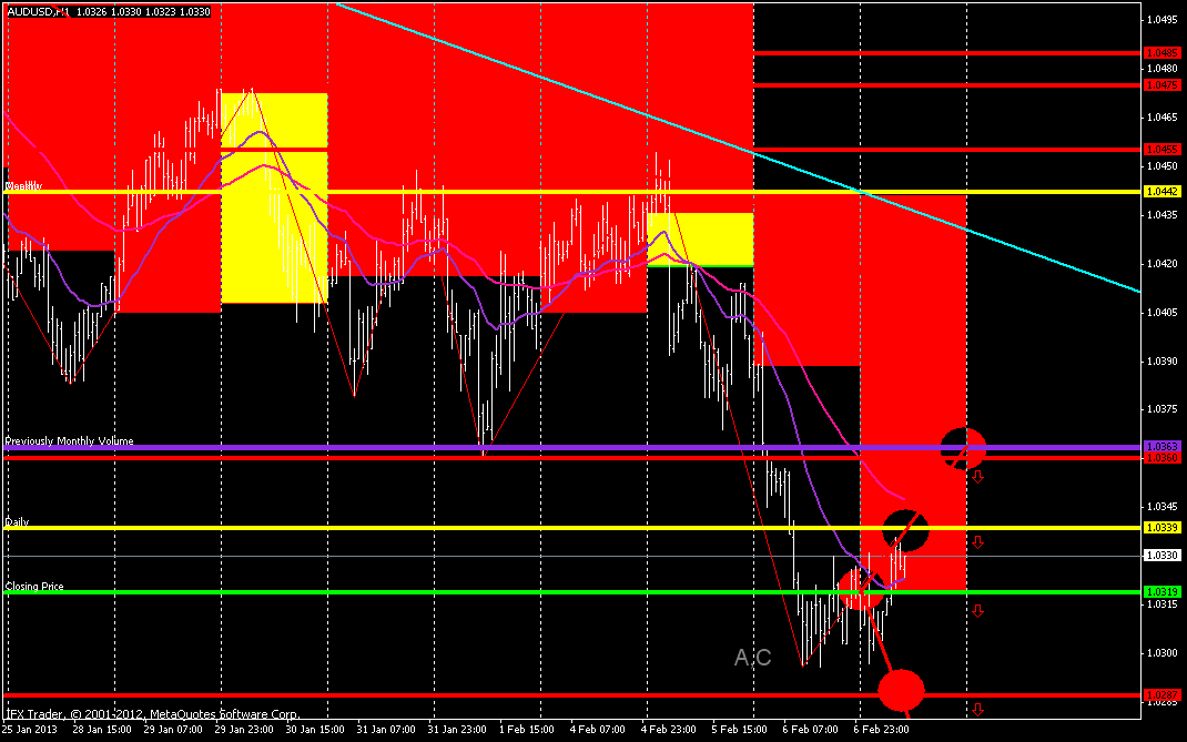 Австралиец в плену пессимизма, который возник ночью на публикации о розничных продажах. Был повторен результат прошлого месяца, но ожидания были на гораздо лучшую информацию, поэтому мы покатились вниз, а тут еще усиление доллара из-за известного заявления президента Обамы о госдолге. Судя по всему, это снижение будет продолжено, и к концу дня мы дойдем до 1,0280.