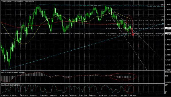 Исходя из технического и фундаментального анализов, в конце прошлой недели ауси выглядела более уверенно по сравнению с другими основными валютами по отношению к доллару, упав совсем немного. С открытием торгов в новой недели, я ожидаю, что быки все таки сдадутся и пара начнет более уверенное снижение и целевым уровнем будет 1,0180, и медвежий тренд сохранится, толкая пару к линии поддержки.