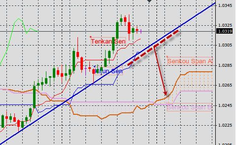 Пара торгуется выше облако Ишимоку и линии индикатора Kijun Sen и Tenkan Sen что в целом способствует снижению цены в краткосрочной перспективе.Сигналом к открытию короткой позиции может послужить минимум свечи закрывшаяся ниже трендовой линии с целью понижения до уровня облако индикатора Ишимоку.Стоп лосс может послужить одна из линии Kijun Sen или Tenkan Sen.