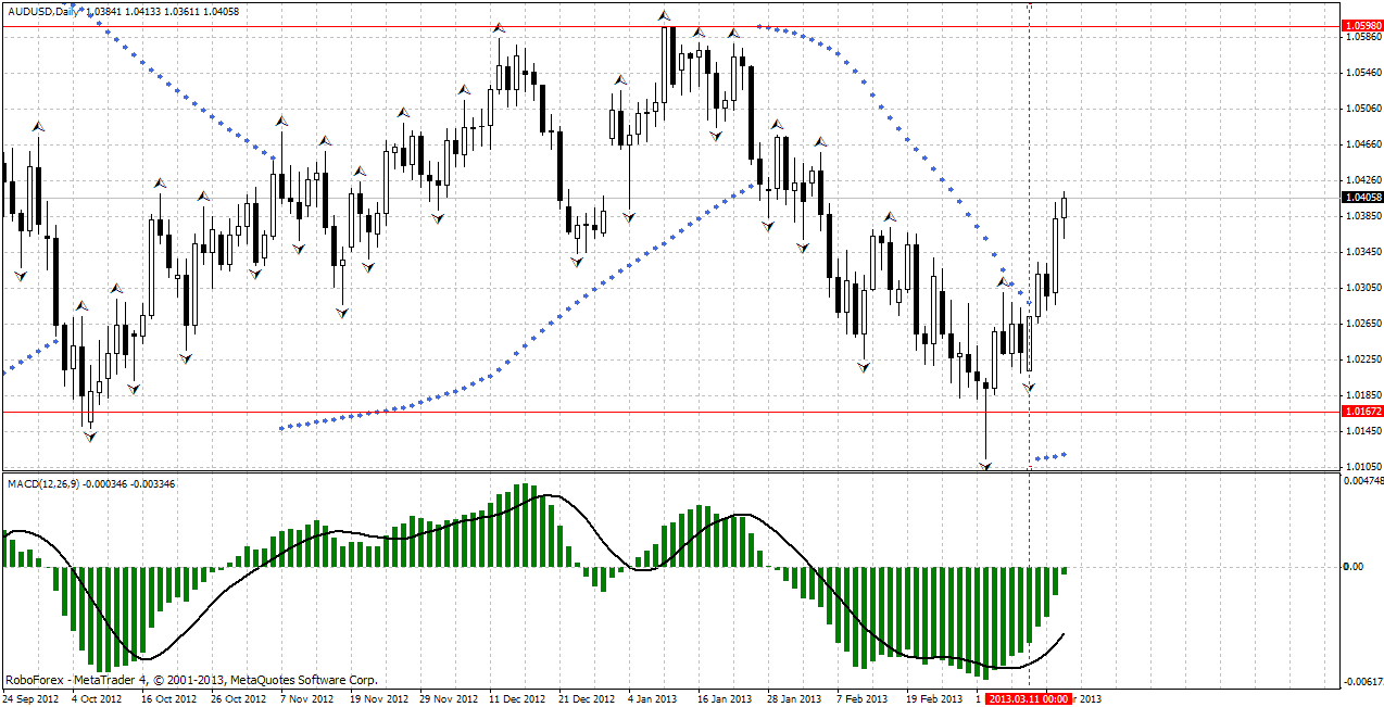 Здравствуйте уважаемые трейдеры! В моём аналитическом прогнозе на пятницу 15 марта по валютной паре AUD/USD Австралийский доллар продолжает сегодня развитие своего роста второго импульса,структура предполагает отработку ценового уровня 1.0412(61.8%уровень фибоначи). После этого ожидаю нисходящею коррекцию с возвратом на уровень 1.0298(38.2%уровень фибоначи). ![]() | ||||