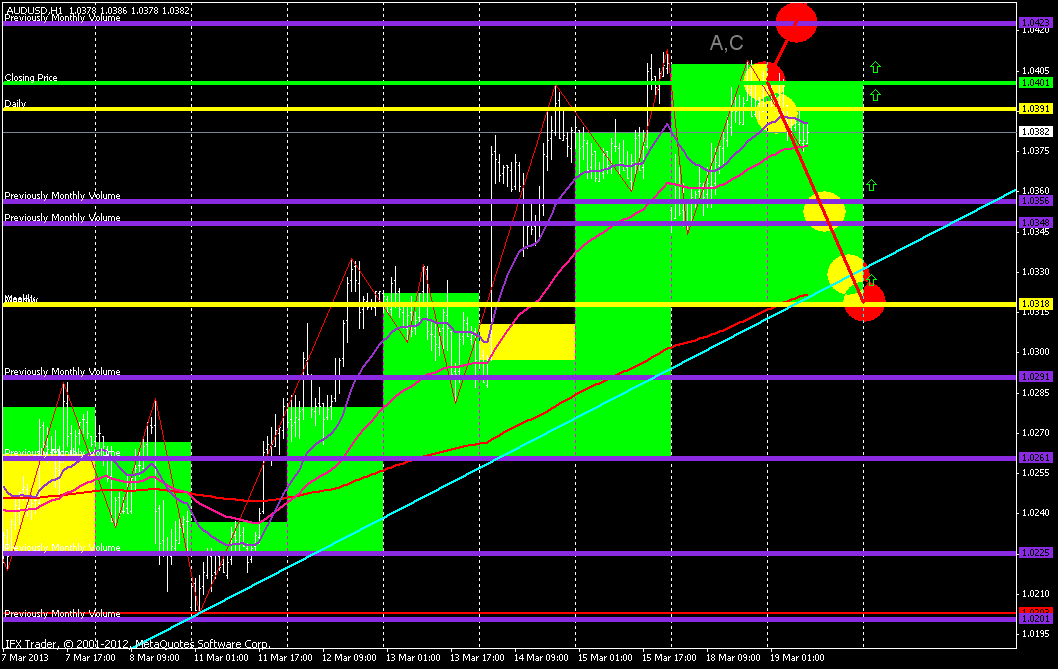 Всем привет! Мой аналитический прогноз по валютной паре AUD/USD на 20.03.2013 исходя из технического и фундаментально анализа Австралийский доллар торгуется в восходящем тренде и цена подходит к трендовой линии подержи. На завтра рассматриваю его снижение на перекрытие уровней 1.0356(50.0%уровень фибоначи) и 1.0339. И только после этого рассматриваем ещё одну волну роста на перекрытие 1.0412(61.8%уровень фибоначи) ![]() | ||||