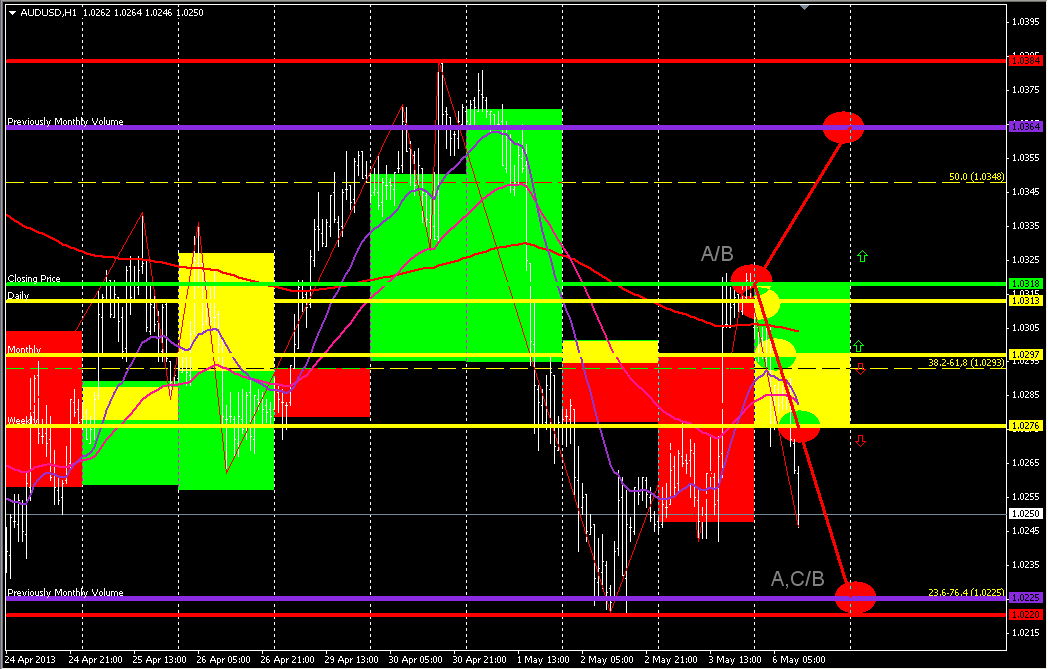 Банк Австралии понизил процентную ставку. Пара отреагировала снижением, пробив сильные уровни поддержки 1,0225 и 1,0201 (предыдущий месячный объем) и начала формирование медвежьей импульсной волны А,С (Н1-Н4). Цели снижения – 1,0160 (предыдущий месячный объем) и 1,0115 (минимум марта 2013 года). Ключевой уровень 1,0297 (месячный объем фьючерса) оказывает давление на пару и ограничивает ее рост. Прикрепленные файлы: