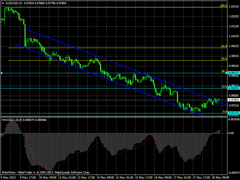 Здравствуйте уважаемые трейдеры! Моя аналитика и прогноз по валютной паре AUD/USD с 20.05.2013 по 24.052013 Австралиец прдолжил на прошлой недели своё снижение и наверное приближается к своему годовому минимуму. Исходя из технического и индикаторного анализа рассматриваю сперва отскок пары на рост от линии поддержки к уровню 0.9796 так как осцилятор стохастик указывает на рост. А за тем падение пары к уровням 0.9750 0.9704 и возможно даже к 0.9625 где находится очень сильная поддержка! ![]() | ||||