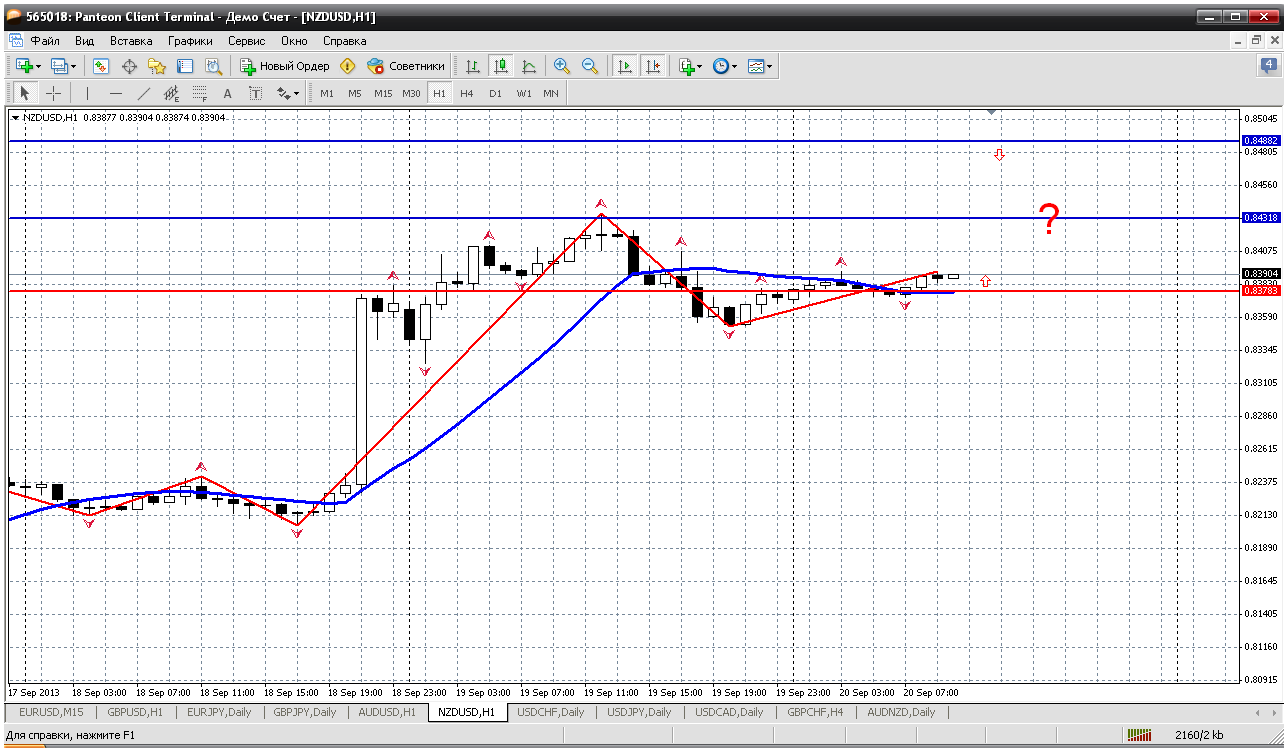 Nzd\ USD продвинулся довольно высоко после того как ФРС решил не начинать сужение своих покупок активов в этом месяце. Чувствительные к риску валюты такие, как новозеландский доллар, выиграли от решения ФРС.Кроме этого положительные новости сыграли свою роль так например Индекс валового внутреннего продукта (ВВП) Новой Зеландии увеличился на 0,2% за второй квартал 2013 г., Единственный способ поумнеть это играть с более умным противником. |