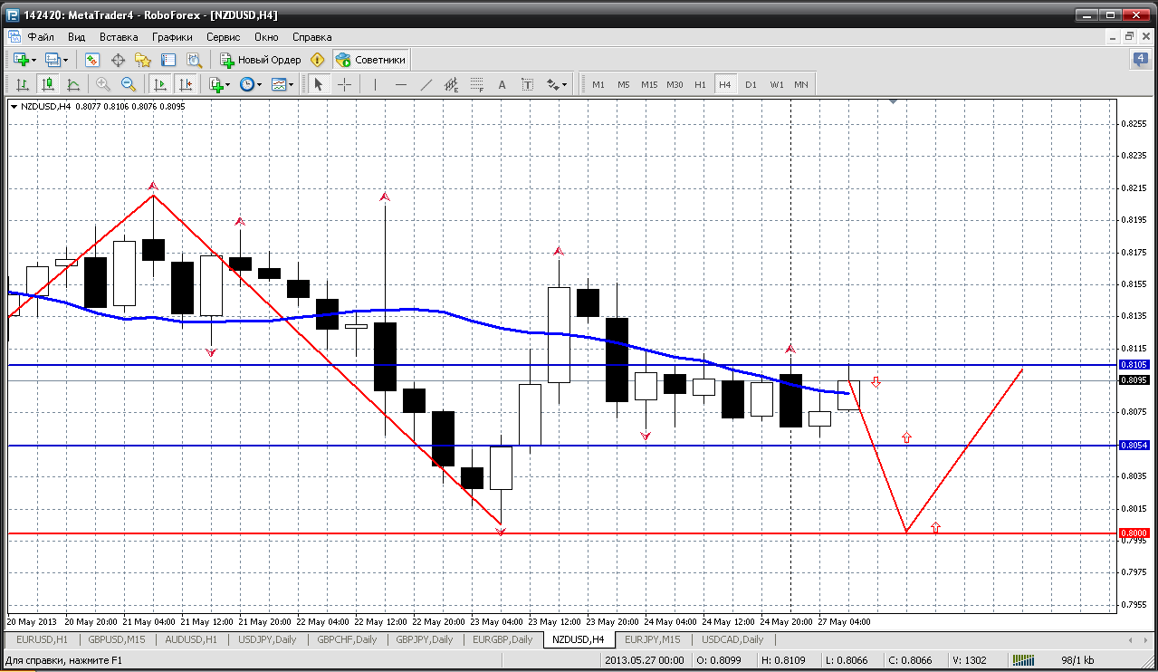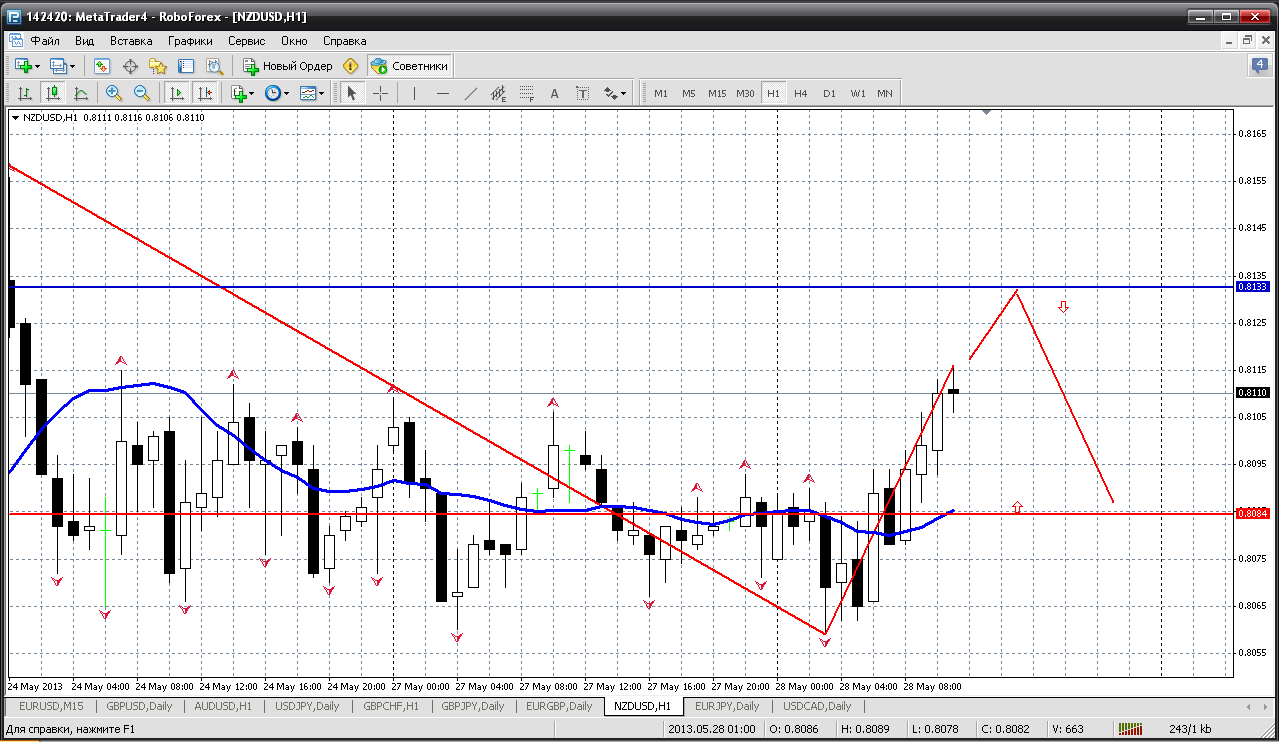 На данный момент новозеландец ровно посередине некоего диапазона: сверху - 0.8133 (сопротивление сегодняшнее), от этого уровня вполне реальны продажи....