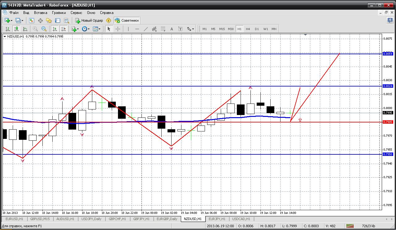 Новозеландец-доллар продолжает повычение в границах восходящего канала-цена идеально отрабатывается. На данный момент у довольно сильного уровня 0.8095, пробитие которого откроет путь к дальнейшему повышению пары с глобальной целью на 88й фигуре-верхняя граница недельного канала. Продажи не рассматриваю пора-только если канал пробьется вниз |