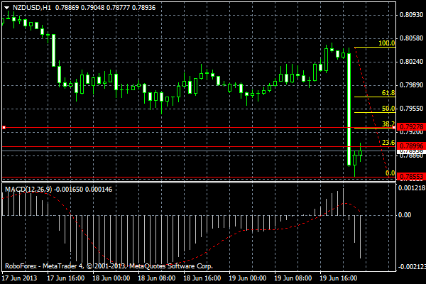 По валютной паре NZD/USD ожидаю коррекционный рост котировок с текущих уровней к уровню 0,7927, что соответствует уровню 38,2% по Фибоначчи, откуда можно продавать пару с первой целью 0,7899, что соответствует уровню 23,6% по Фибоначчи, и со второй целью 0,7855, что соответствует уровню 0% по Фибоначчи. |