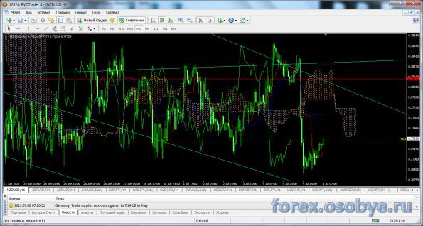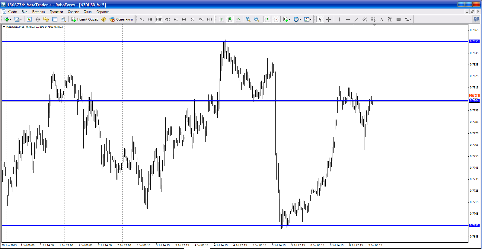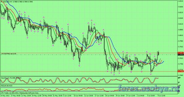 Общее движение думаю будет вниз,сейчас направлено резко вверх. Я с запозданием продал на уровне 0.7842, поэтому Т/P и S/L 50 на 50 с риском. цель пока до нижней линии индикатора расположенного на уровне 0.7781. Т/P выставил на отметке 0.7783.если цена позволит буду работать с плавающим стопом. S/L выше верхней линии канала индикатора на уровне 0.7897.Сейчас цена резко движется вверх, после разворота возможно открою еще одну сделку на sell. ![]() Редактировалось: 4 раз (Последний: 10 июля 2013 в 06:01) | ||||