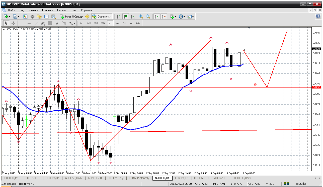 Здравствуйте уважаемые коллеги. Валютная пара NZDUSD движется во флете, поэтому рекомендую подождать пробития одного из пивот уровней. Для снижения цены ожидаю пробития уровня 0.7790 и на ретесте буду открывать ордер на продажу с целью снижения к уровню 0.7750. Покупать валютную пару рекомендую при пробитии уровня сопротивления 0.7830. Всем профита ![]() |