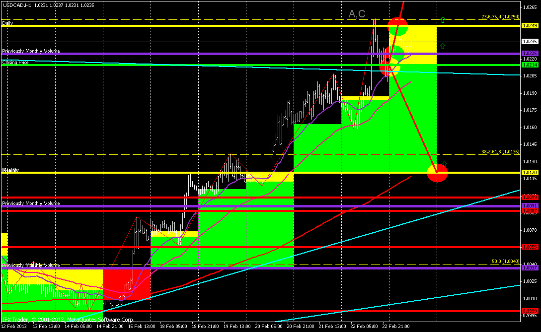 Во первых пара достигла верхней линии восходящего канала и сформировала разворотный бар, плюс к этому было долгое движение в северном направлении без корекции. Также цена подошла к важному уровню сопротивления 1.0284. Всё это говорит что в понедельник будет хорошее движение в южном направлении вплоть до нижней линии восходящего канала ![]() Редактировалось: 1 раз (Последний: 24 февраля 2013 в 17:46) | ||||