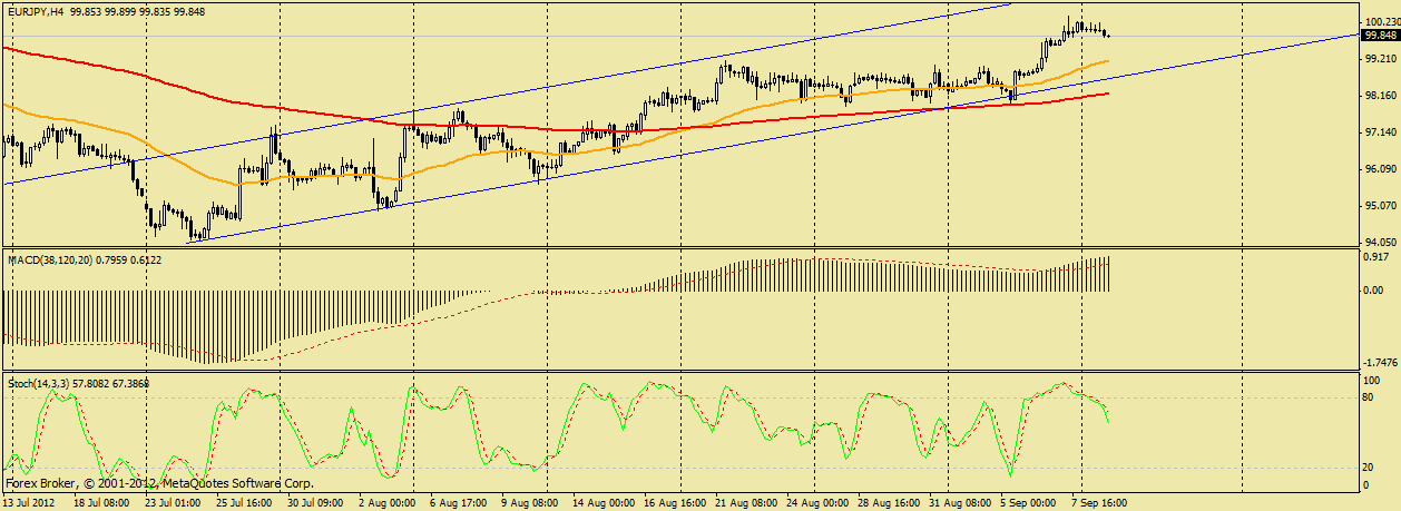 Пара продолжает корректироваться, курс сейчас подошел к уровню поддержки 100.30, также идет отработка сигнала на продажу стохастика на 4 часовом графике, скорей всего уровень 100.30 будет пробит, что откроет путь к 99.16. ![]() | ||||