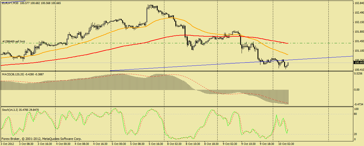 Пара сегодня продемонстрировала сильное падения, несколько часов назад курс опять прорвал краткосрочный уровень 101.05 (фигура), и укрепил свои позиции ниже 200 скользящей средней, я пока жду коррекции для продажи. ![]() | ||||