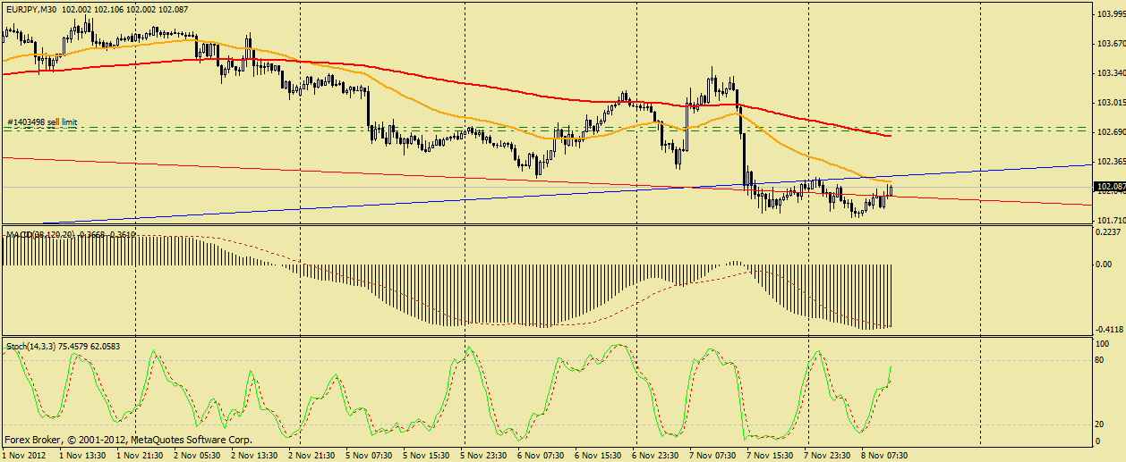 EUR/JPY продолжает снижения на юг, пара завершила небольшую северную коррекцию после чего сделала новый минимум дня, основная цель медведей думаю находится в районе 100.00 (сильная фигура)- 99.80, от этих уровней скорей всего начнется северная коррекция. ![]() | ||||