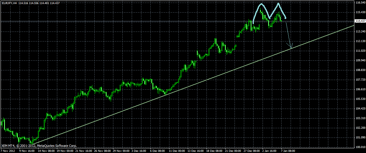 Eur/Jpy:пока уровень 115.5 и граница наклонного канала выступают сопротивлением,возможно снижение пары.