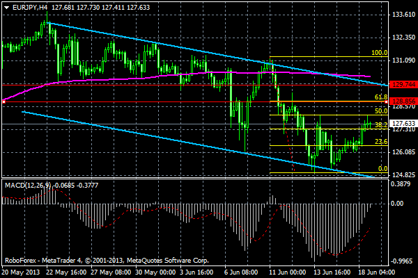 Пара подошла к границе восходящего клина и тестирует её на пробой для возврата в формацию на итогах совещания ФРС и выступления Бернанке. К тому же, как и писал ранее, Курода сигнализирует о том, что Япония продолжит смягчение иены.