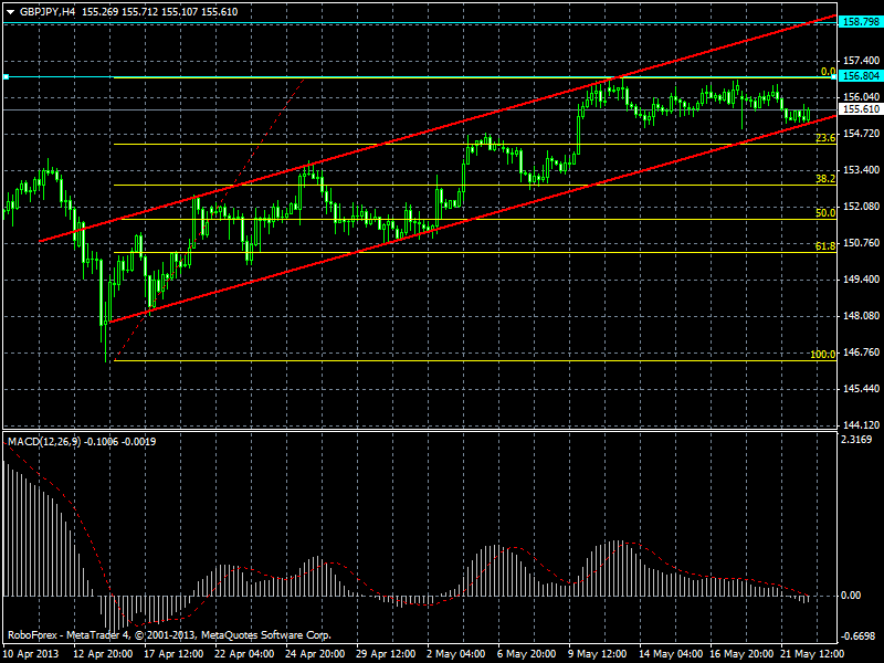 Валютная пара GBP/JPY движется в рамках восходящего канала 4-хчасового графика. На данный момент цена тестирует линию поддержки канала, откуда ожидаю рост котировок до уровня 156,78, что соответствует уровню 0% по Фибоначчи. Прикрепленные файлы: