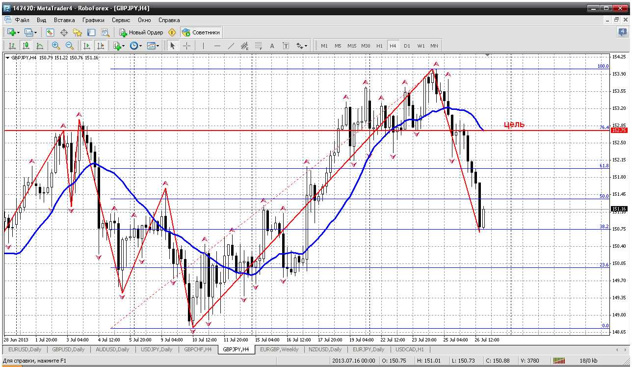 По паре GBPJPY на следующей недели ожидаю рост, в понедельник будет небольшой снижение к уровню 150,20 или с текущих может быть разворот, стоп поставить на уровень 149,50,не думаю что ниже упадем, первая цель вверху на уровне 151,60 далее откат вниз и в конце недели жду цели у уровня 153,10