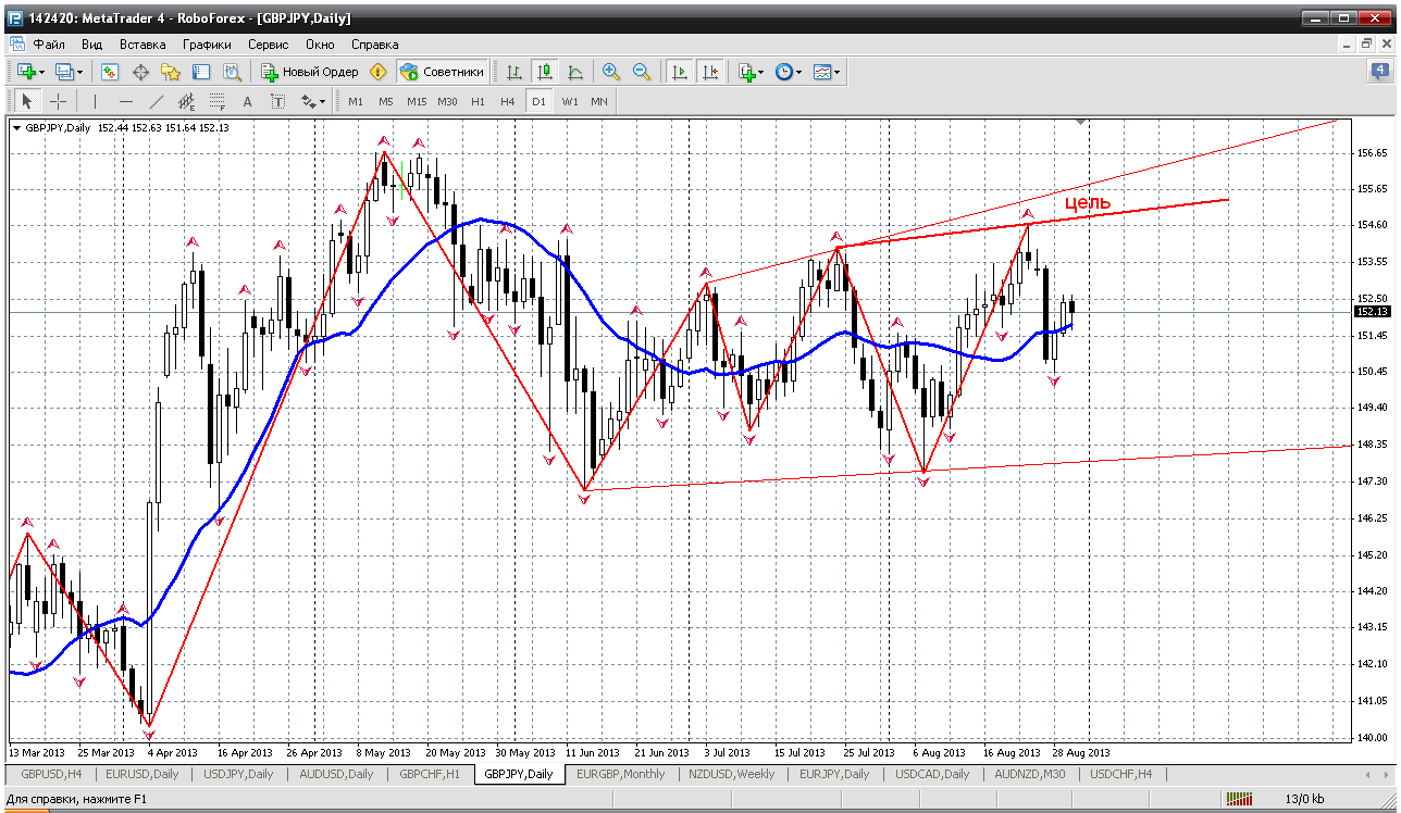 и все - теперь на север. И ближайшая цель район 155 плюс минус...У меня так получается Остается только порадоваться, что такие опасные пары, как йеновые кроссы ведут себя так технично. Фунтйена буквально в полдня выполнила свои цели. Теперь пока в сторонку по этому летучему кроссу. Покупать на таких вершках явно не разумно. Продавать...может получиться, что и рано. А вот дождаться теста трендовой линии на дневке и оттуда буду начинать продажи, а это район 156 примерно. Не раньше.... | ||||