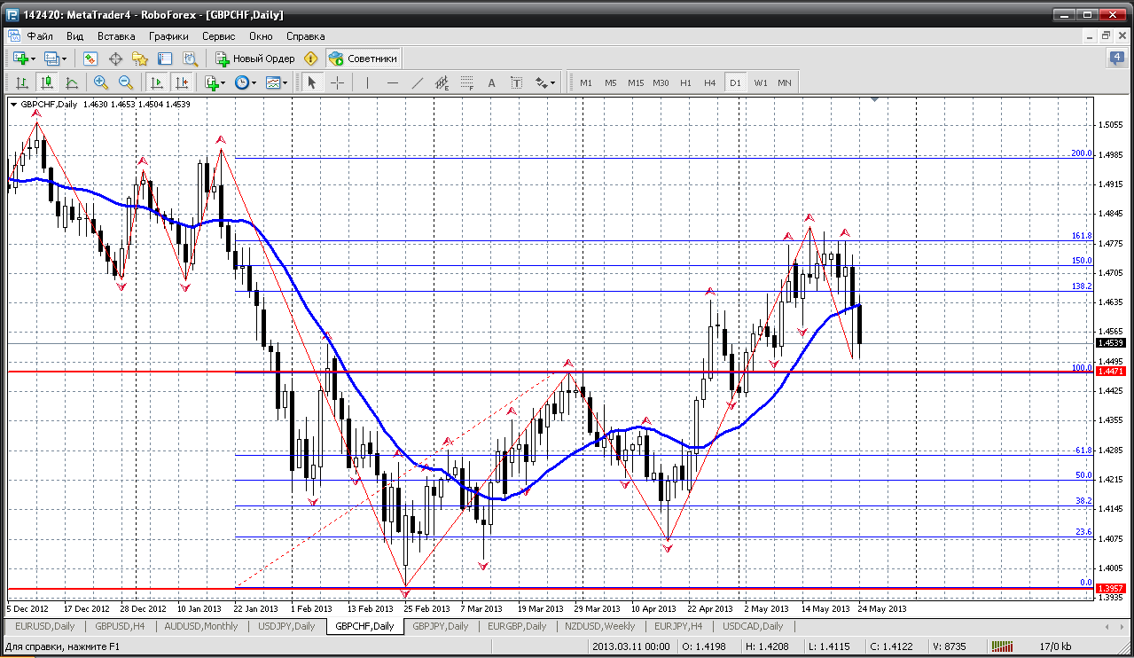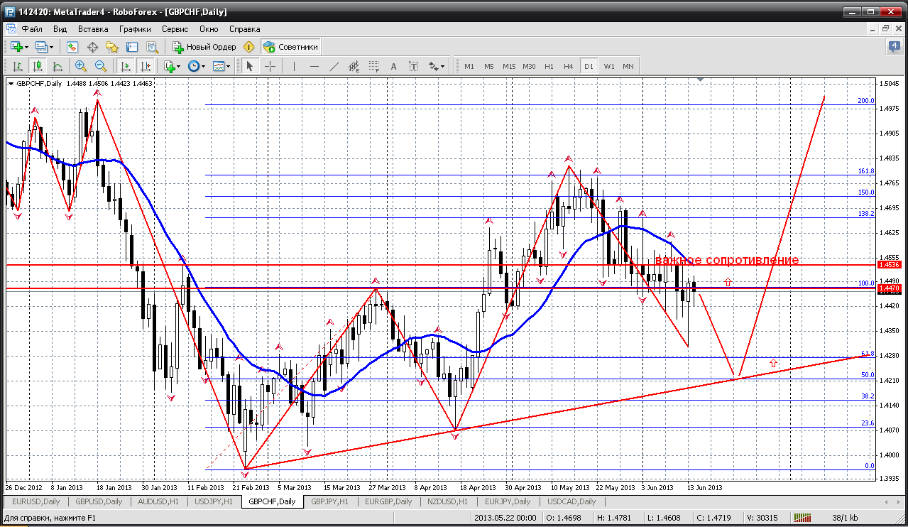 Возможный сценарий GBP/CHF на июнь 2013 г. :