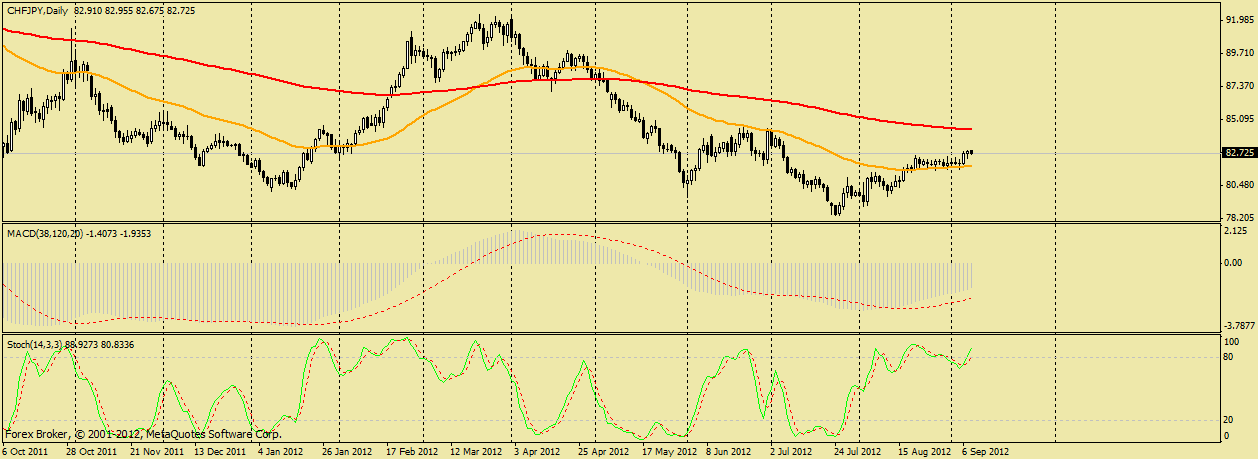 Гистограмма MACD по-прежнему расположена в положительной зоне, и продолжает плавно подниматься и тем самым подает сигнал на покупку.Осциллятор стохастик находитсяв нейтральной зоне,го видно что минимумы осциллятора, поднимаются,так что сигнализируют о силе покупателей...так что думаю пара должна рости но покупать следует после пробоя уровня...84.30... ![]() | ||||