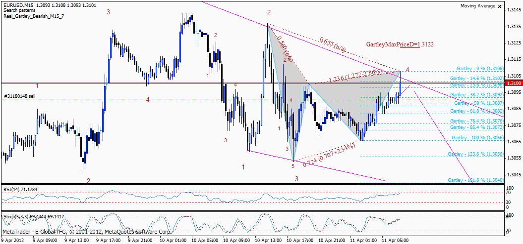 Добрый вечер,вот решил выложить свой первый прогноз: пара EURUSD в данный момент корректируется ,дойдёт к уровню 1.3100,если его пробьёт и закрепится выше него следующий уровень 1.31500,желаю хороших профитов! Редактировалось: 3 раз (Последний: 17 апреля 2012 в 21:07) Кela | ||||