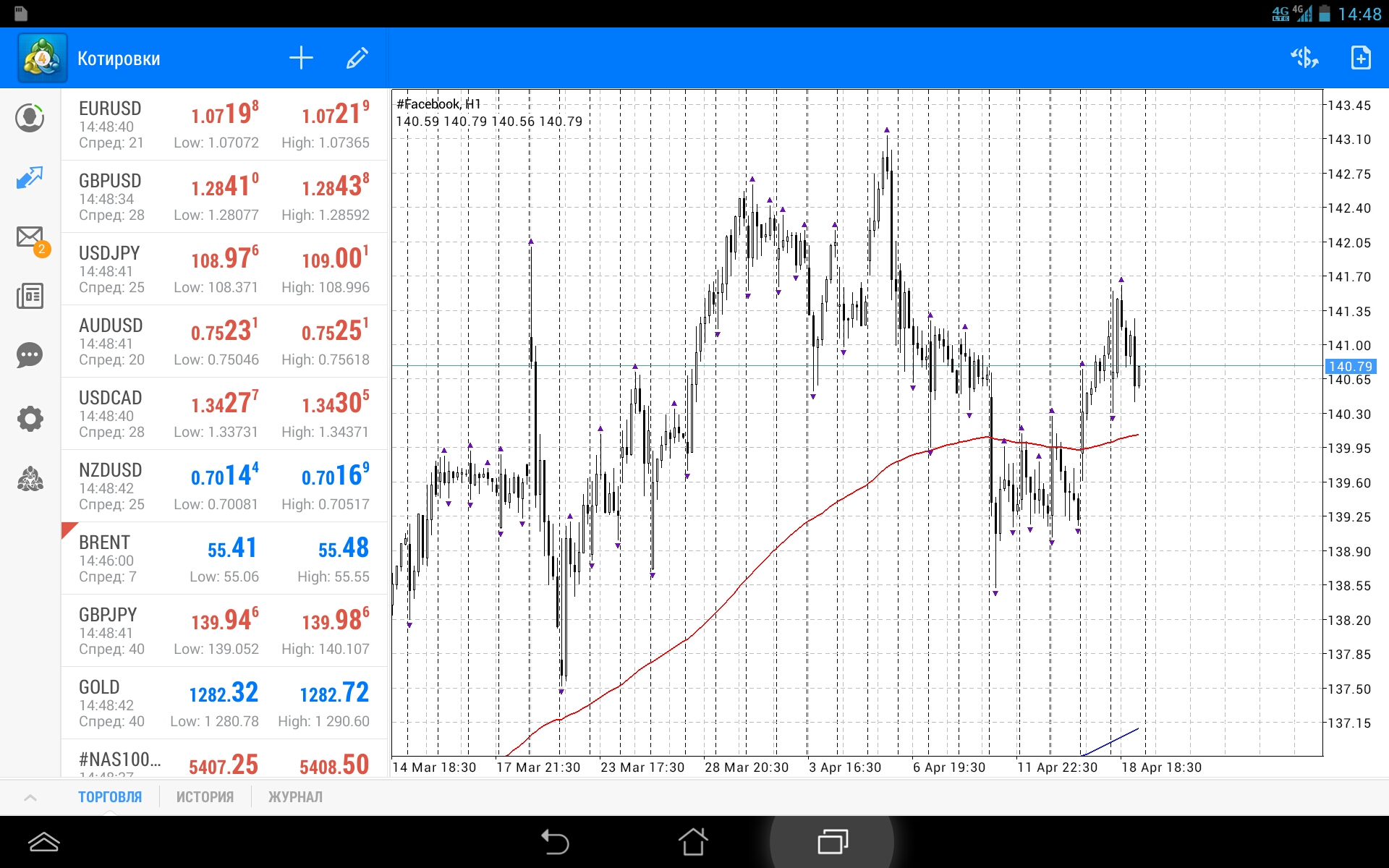 Кто входил на открытии по FB смог взять движение в 1 доллар, так как рынок открылся с гэпом на 50 центов, соответственно тейк профит нужно было тоже снизить на эту величину, а именно на 141,50! И после неспособности цены пойти выше продавать с целью 50 центов прибыли! | ||||