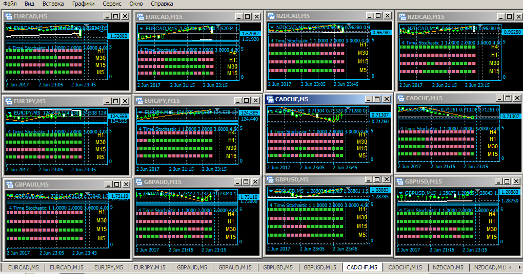 1. Получаем сигнал по 4 тайм стохастик, что все графики направлены в одну сторону