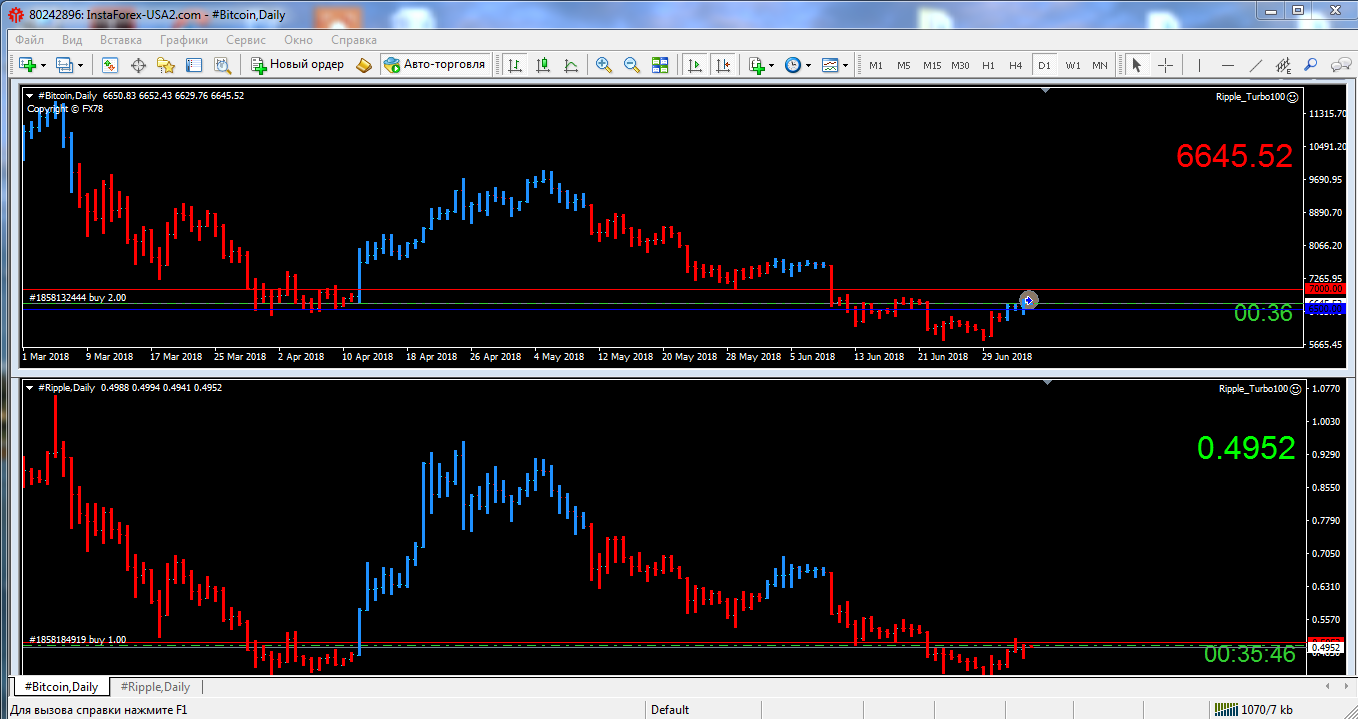 Буду показывать результаты его торговли с реального счета. На депозите 5200 $,а На Ripple и на Bitcoin. | ||||