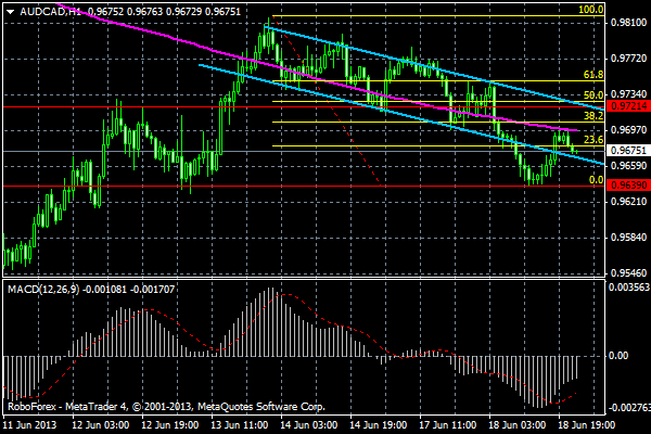 Решил по работать с кроссами, пара AUD/CAD преодолела поддержу наклонного канала на Н1(0,9675) и направляется к поддержке канала на Н4 (0,9404)