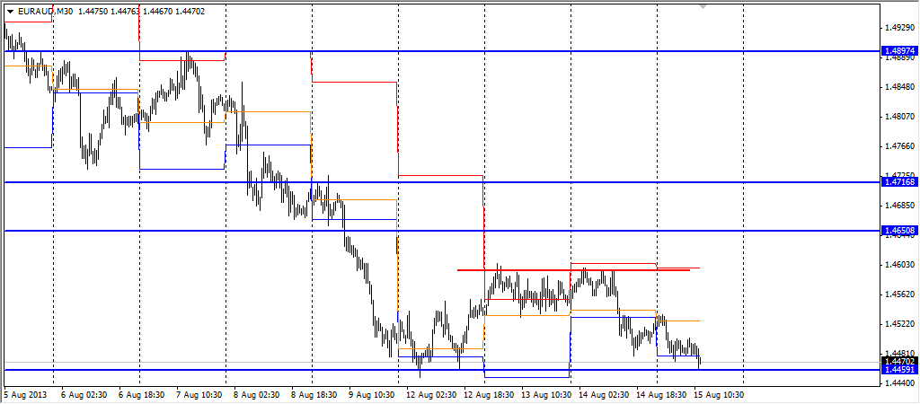 Пара евро оззи торговалась на неделе в диапазоне с поддержкой на 1,4460 и сопротивлением на 1,4600-20.Пока пара в диапазоне буду смотреть на отбой от границ внутрь диапазона и на пробой поддержки и сопротивления и торговле на продолжения пробоя .