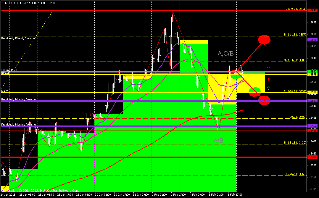 Проанализировав валютную пару - евро-американский доллар,использовав технический фундоментальный анализ и линии фибоначи,можно предположить что данная валютная пара будит падать с целью -1.35,а если пробьёт этот уровень то падать до -1.34,альтернативный сценарий рост к -1.36 а затем опять падение.вобщемто ничего неизменилось,прогноз падение.Стоит внимательно следить за выступлением М.Драги.