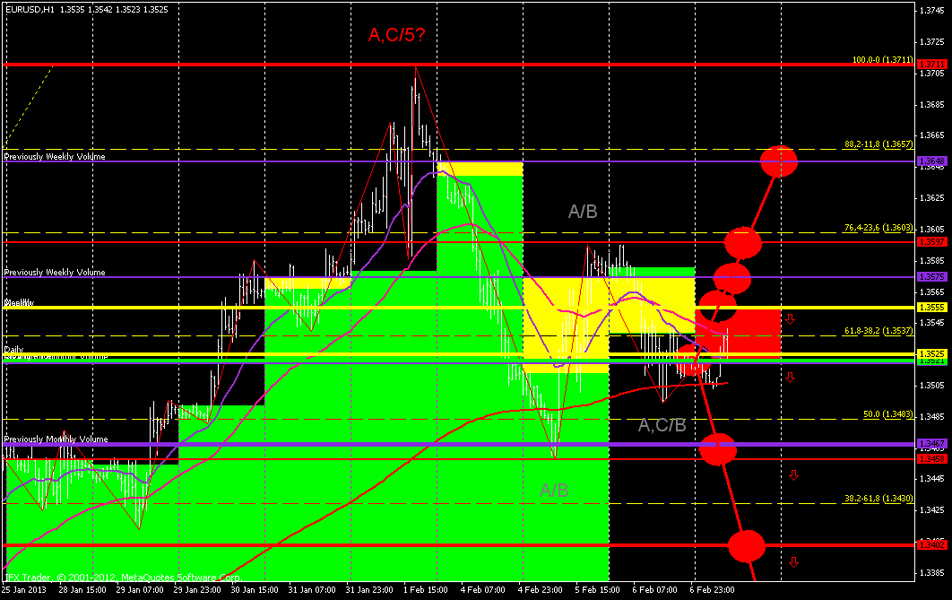 Евро продолжает коррекционное движение и формирует медвежью неопределенную волну А,С/В (Н1). Вчерашнее снижение пары было приостановлено на уровне 1,3521 (предыдущий месячный объем). Ключевым уровнем на данный момент является 1,3555, где сосредоточен месячный и недельный объем фьючерса. Видимо, что куда пробьем, туда и пойдем. Возможны и ложные заскоки, как ни как, сегодня выходят данные о процентной ставке в Еврозоне. Целевой уровень поддержки на уровне 1,3325 (предыдущий месячный объем), это если начнем падать. Рост пары, думаю, пока ограничен, хотя кто знает. Прикрепленные файлы: