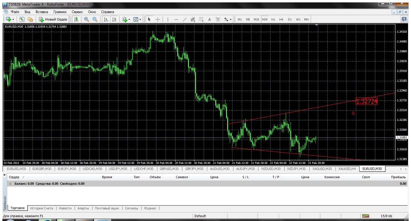 Если смотреть на м30,то тут существует вероятность от текущих пойти вверх к 1.3245 и 1.3270,так-как опять вернулись за 1.3180.С другой стороны,тут граница наклонного канала выступает сопротивлением,что может повлечь продолжение снижения к 1.3155 и 1.3125.Больше все же склоняюсь к первому варианту. ![]() Никогда и ничего не просите! Сами предложат и сами всё дадут | ||||