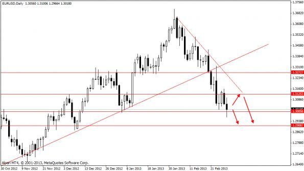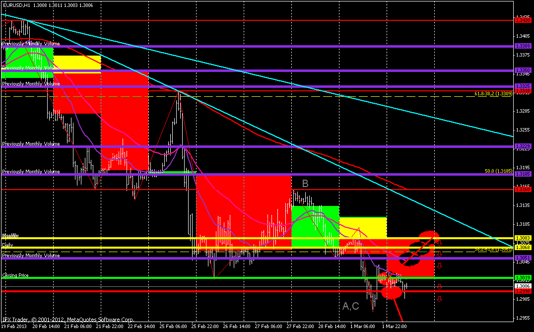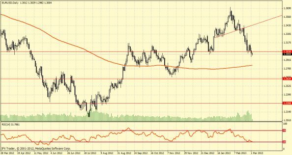 В прогнозе на понедельник 4 марта по валютной паре EUR/USD В пятницу после неудачной попытки стабилизации европейской валюты ниже уровня 1.3000 пара скорректировалась на рост и я по прежнему рассматриваю на стабильность ниже вышеупомянутого уровня,что заставляет нас ожидать прорыв сильного психологически важного уровня 1,3000. Что приведёт пару к уровню 1.2919 после ожидаю коррекцию пары на верх. |