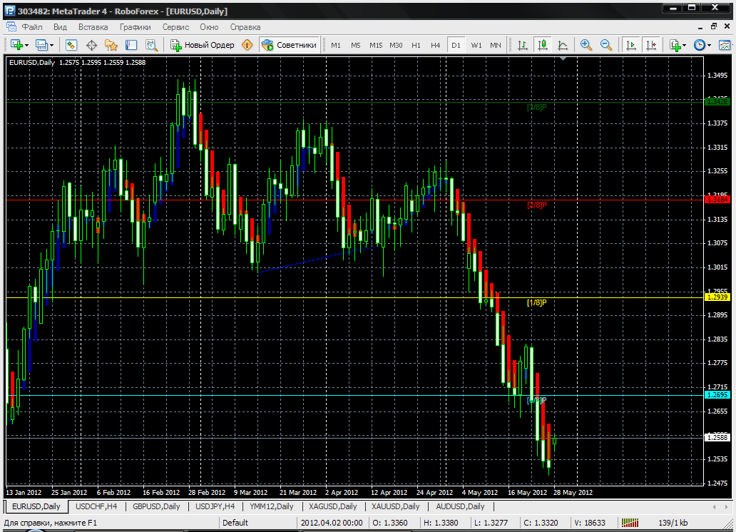 Многие пары против доллара, так же как и евро, пока топчатся на месте - флетуют. Идти дальше вниз не дают данные тех. анализа, которые показывают на ближайший рост, а расти не позволяет зыбкое состояние еврозоны. Достаточно чьей-либо солидной покупки евро - и рынок стронется с места и начнет расти. Возможны длинные свечи вверх, флет показывает, что активные продажи закончились. Редактировалось: 1 раз (Последний: 29 мая 2012 в 17:44) | ||||