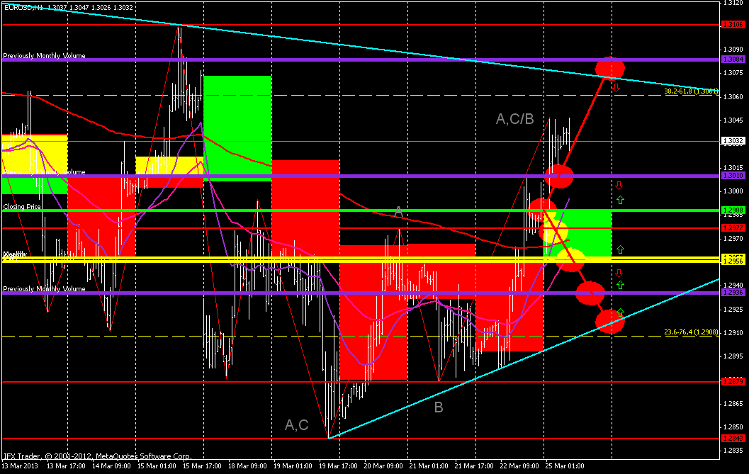 Маловероятно, что евро продолжит стабильный рост на следующей неделе, так как даже если все таки с проблемами в Кипре разберутся, то это окажет краткосрочную поддержку евро, так как в самой Еврозоне все уж очень плохо, и поэтому скорей всего поднимется максимум до 1,3050-1,3080, а потом обратно вниз, вплоть до 1,2885, в случае если удастся пробить MA200, то это может подтолкнуть пару к более сильному снижению.