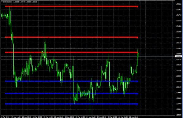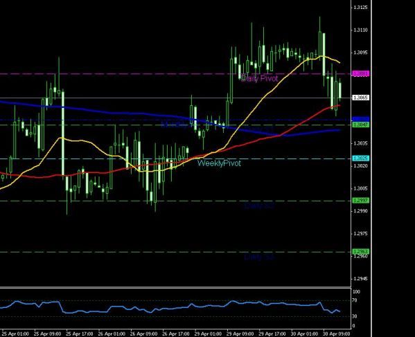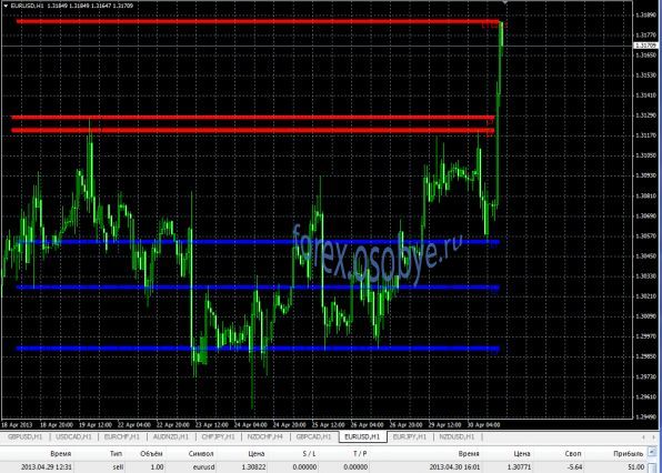 По паре евро доллар на часовом графике уровень сопротивления 1.31014 уровень поддержки 1.30253 продажи по паре о которых писала вчера еще держу так как предполагаю все ж снижение ,ну а если пробьет уровень сопротивления зафиксирую убыток по стопу и пересмотрю график |