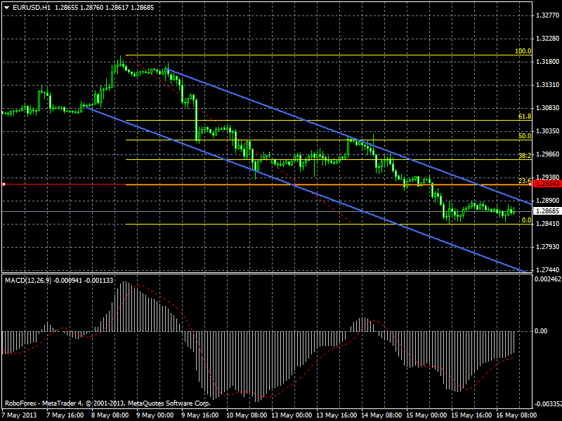 Валютная пара евро/доллар движется в рамках нисходящего канала на часовом графике. Цена все время пытается торговаться у линии сопротивления канала, пытаясь его пробить. Поэтому ожидаю рост цены до уровня 1,2924 как минимум, что соответствует уровню 23,6% по Фибоначчи. Гистограмма MACD также подает сигнал на покупку. Прикрепленные файлы:
