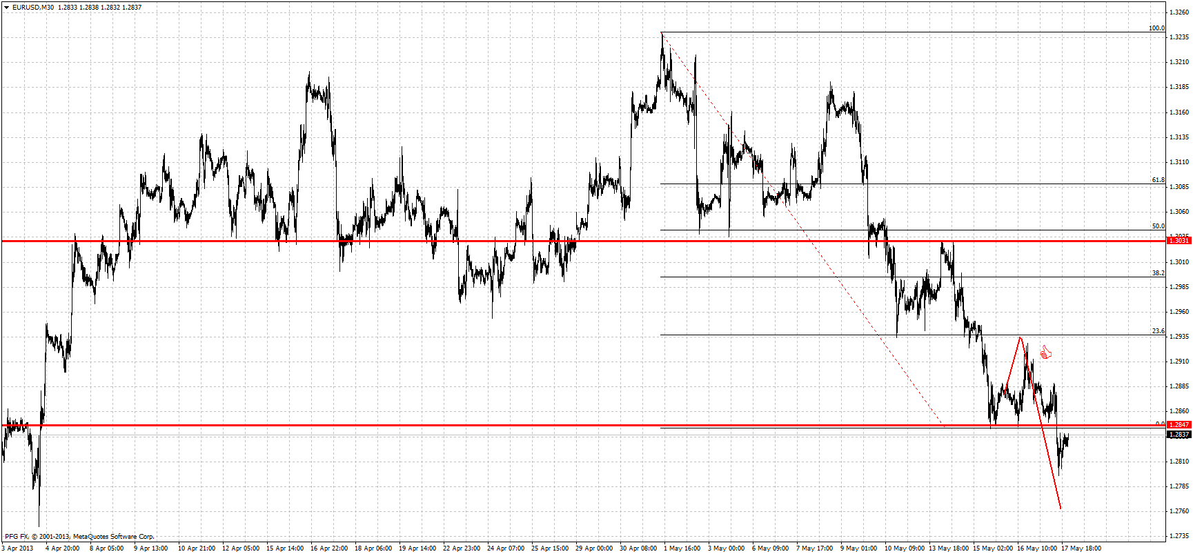 Всем здравствуйте! Мой аналитический прогноз по валютной паре EUR/USD на следующую неделю! Валютная пара евро доллар движется в нисходящем тренде,исходя из технического анализа рассматриваю возобновление снижения пары в ценовую зону 1.2800 1.2746(0.0%уровень фибоначи) от этого уровня ожидаю отскок пары на верх к уровням 1.2871 1.2929 и выше к 1.2971(23.6%уровень фибоначи) ![]() | ||||