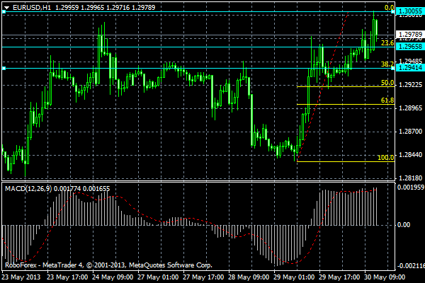 По валютной паре евро/доллар прогнозирую снижение курса к уровню 38,2% по Фибоначчи, что соответствует цене 1,2975, откуда можно войти в рынок со сделкой на покупку с целью на уровне 1,3008, что соответствует уровню 23,6% по Фибоначчи. Т.е. сделку на покупку рекомендуется открывать с текущего уровня. Прикрепленные файлы: