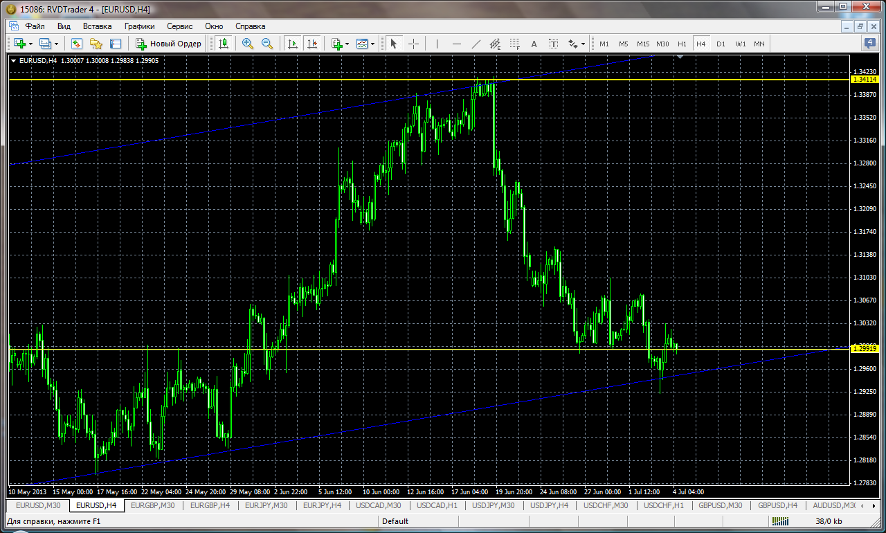 пара консолидируется у уровня 1,3000. На сегодня возможен тест уровня 1,3027 , Но общее направление к уровню 1,2911(поддержка канала на Н4 совпадающая с 0% Фибоначчи).По прежнему на этой паре трудится советник - зарабатывает профит.
