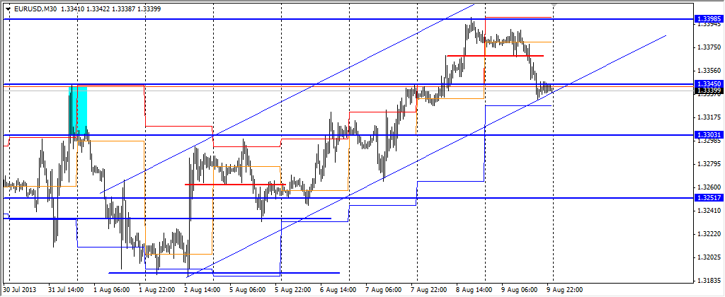 Пара евро доллар закрылась под поддержкой на 1,3345 но пока остается в рамках восходящего канала .На понедельник планирую покупки от уровня 1,3345 и при отбое от границы восходящего канала .и продажи при пробое границы восходящего канала и при отбое от уровня 1,3345. Прикрепленные файлы: