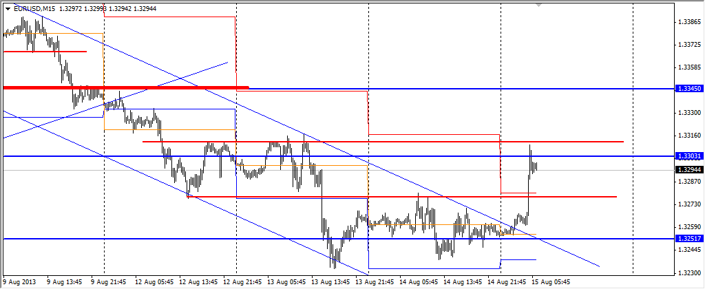 Пара неожиданно в конце Американской сессии сделала рывок и в течении 5 минут прошла 80 пунктов, пробив тем самый уровни 1,3255 и 1,3290 и пробив уровень 1,33 торгуется в данный момент на уровне 1,3353. Целью роста может быть уровень 1,34, после достижения которого пара начнет снижение к уровню 1,32. ![]() Редактировалось: 1 раз (Последний: 15 августа 2013 в 23:10) | ||||