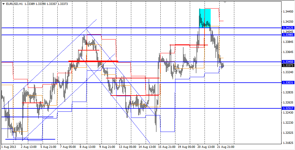 Сегодня в начале Американской сессии был необоснованный рост пары выше уровня 1.34. Скорее всего это произошло на волне истерии и неопределенности в связи слухов о сворачивании програмы КУ3, либо на том ,что фондовые рынки Европы торговали в красной зоне. Пара вышла из треугольника на 1Н в верх и начала его отработку найдя сопротивление на уровне 1,3450 пара отскочила к уровню 1,3414, где и зафлетила в данный момент. По паре неопределенно все так как рост у пары не просматривается, для этого необходимо было снизиться минимум к 1,31 и после чего подняться в 34 фигуру и потому скорее всего ожидает снижение пары для отработки целей внизу. ![]() | ||||