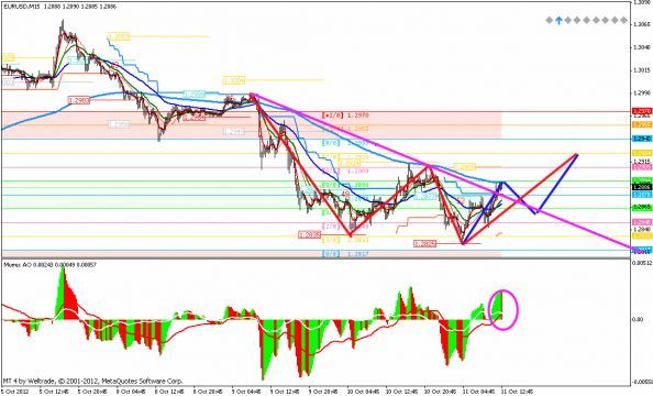По Фибо немного не доходим до вчерашнего ЛОУ 1,2951 На верх пока не пускает вчерашний объем, 1,2932...а вниз 1,2925..пробой одного из них и даст понять куда же мы идем