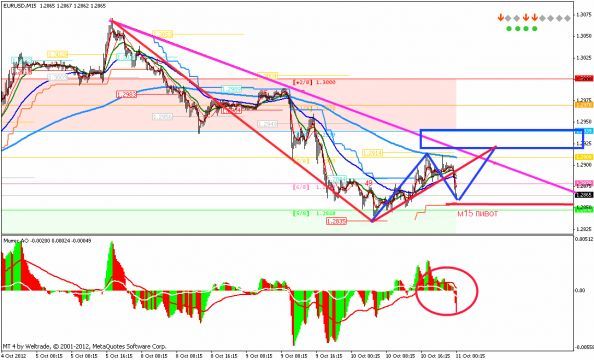 Пара полностью оправдала ожидания.Вернулись к т.о.(пивот м15).Отсюда ожидается формирование волны вверх и пробой наклонного канала.